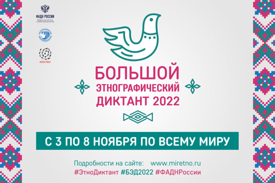 Большой этнографический диктант пройдет 3-8 ноября 2022 года на площадках в России и за рубежом, написать диктант можно будет и онлайн.